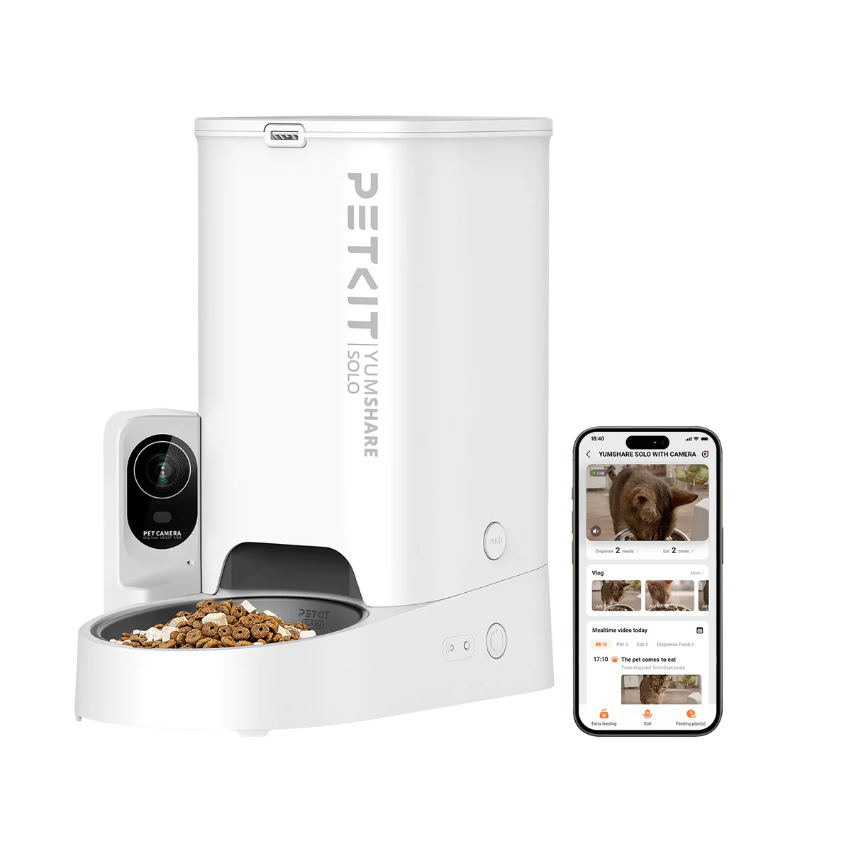 Upgraded automatic pet feeder with dual hoppers meets various nutritional needs. Relish in the joy of capturing every cherished moment of your furry friend with a built-in camera.